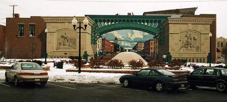 This photo on the left is smaller version of a photo I took of a sign explaining the mural (see above) of Bucyrus.