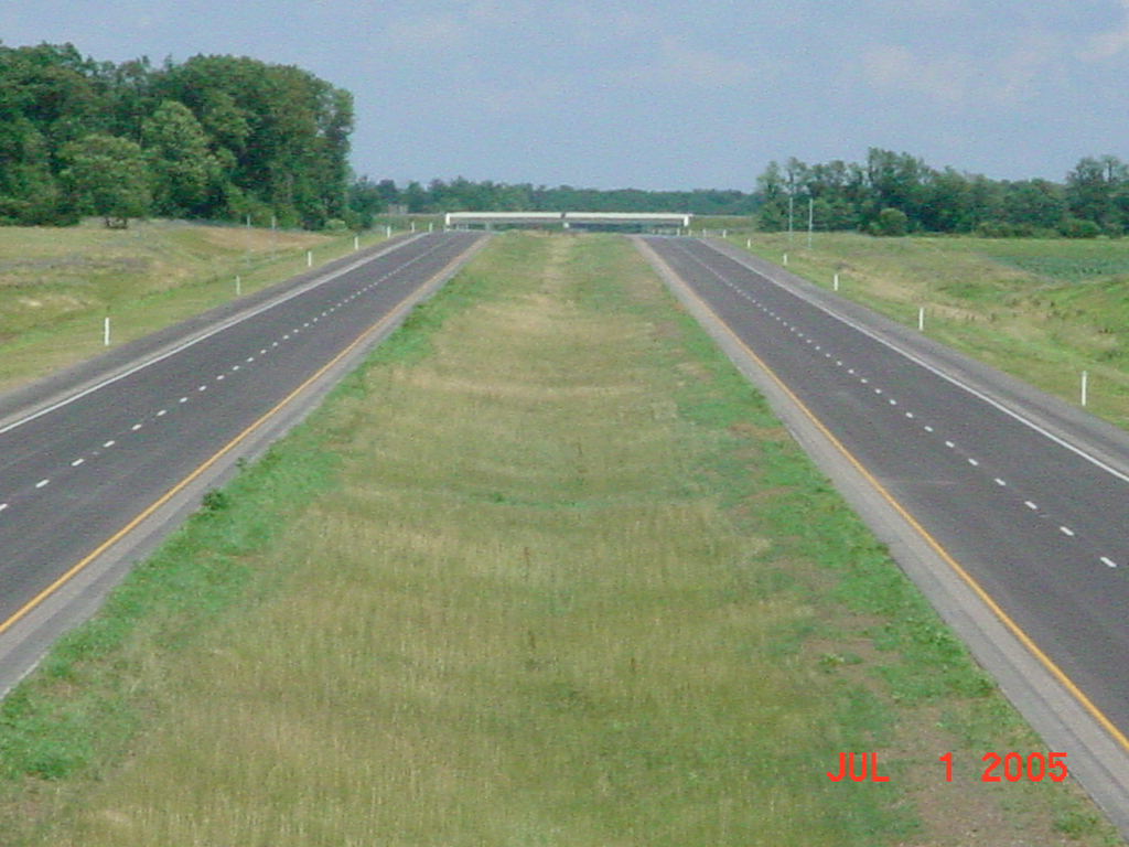 Zoomed in at a curve along US 30, west of Biddle Rd. Seems like a sharp curve for 60 mph (From June, 2004)
