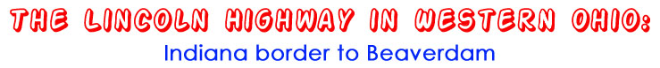 This brick LH pillar was a recent addition to the Lincoln Highway, constructed at the junction of the old Lincoln and Dixie Highways on the east side of Beaverdam by the Ohio Lincoln League in 1999. It is dedicated to Carl Fisher who orchestrated the creation of both the named highways that came through here. Photo taken in June, 2003.