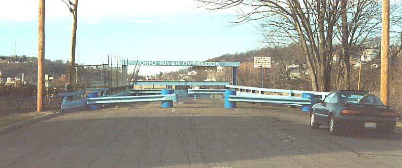 The rectangles in the blacktop denote where a toll booth once stood on the approach to the Ohio River bridge from Chester W Va to East Liverpool Ohio (see above).